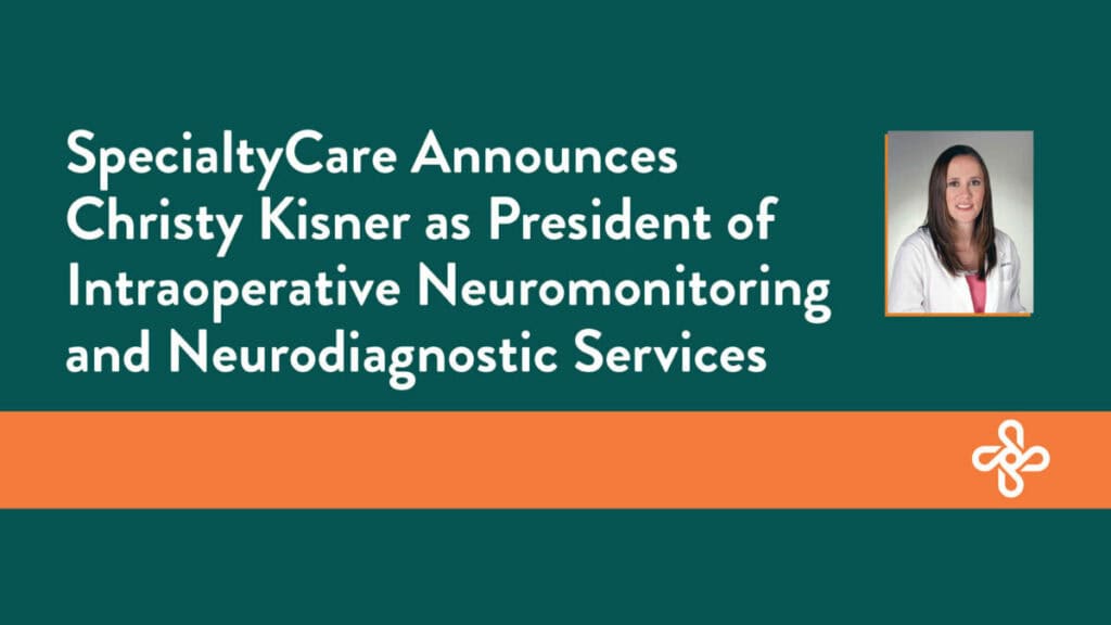 June 10, 2021, (Brentwood, TN)-SpecialtyCare, the nation’s leading provider of Intraoperative Neuromonitoring (IONM), Perfusion, and Surgical Services, names Christy Kisner as President of SpecialtyCare’s Intraoperative Neuromonitoring (IONM) Service Line, effective immediately. Kisner brings over 20 years of outstanding clinical and operational experience in healthcare with particular emphasis on the neurosciences.